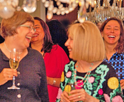 That’s Jeanne and me in the top pic toasting to our books’ success, with cookbook authors Monica Bhide (in red) and Domenica Marchetti (in blue) enjoying the moment along with us. (It appears that we were all on a sugar high, doesn’t it!?)  At left are some of my long-time writer colleagues, Toby Devens, Eileen Bucholtz, and Joanne Settel (foreground); I recently talked about my writers’ group in a post here.